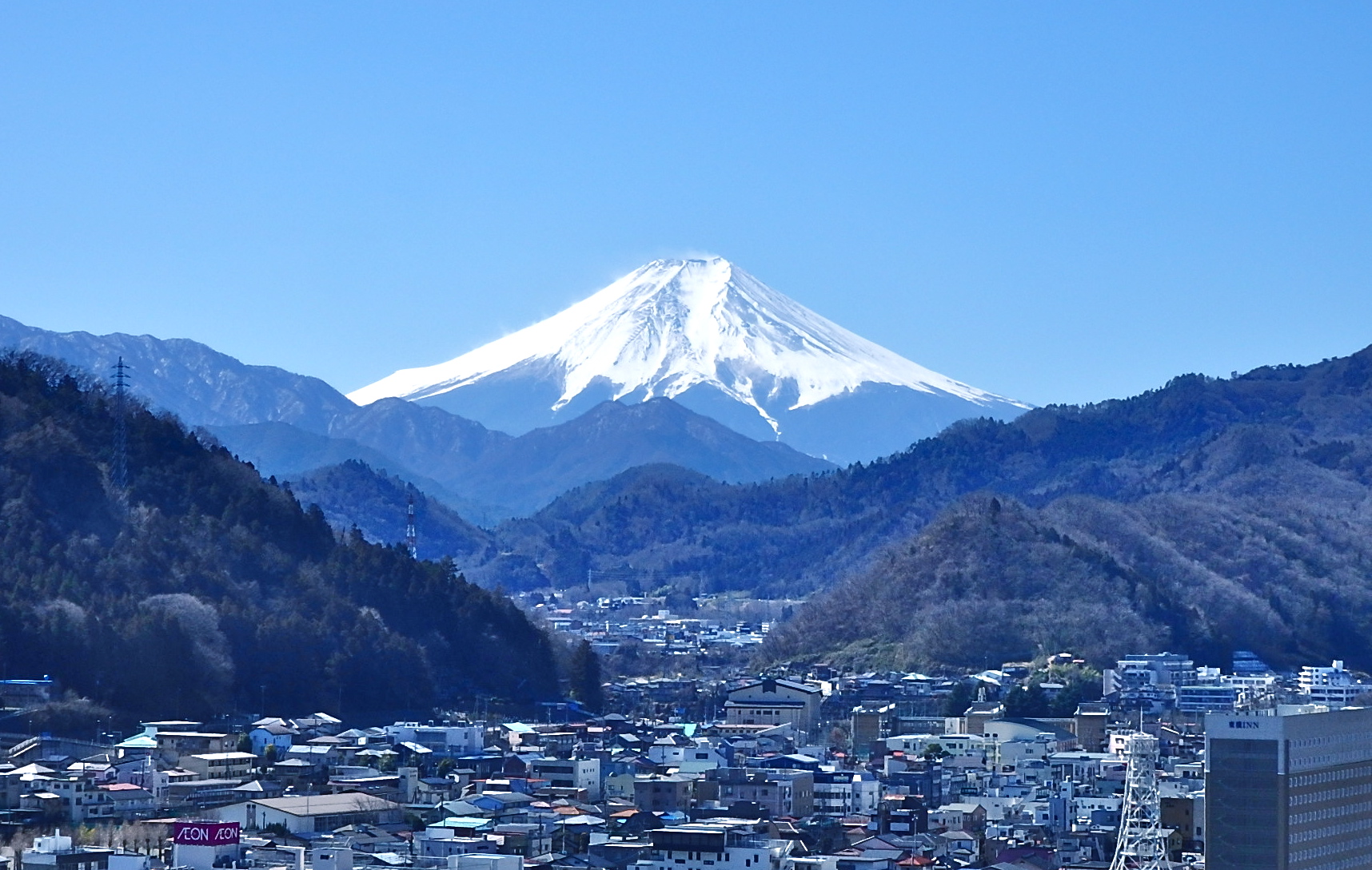 二日前に降りつづいた雨は、富士を雪化粧に変えていた。稜線には雪煙が立ち、厳しい冬の富士になってじつに男前。なんど見ても飽きることがない。そこにあるだけで、日本は安寧となる。