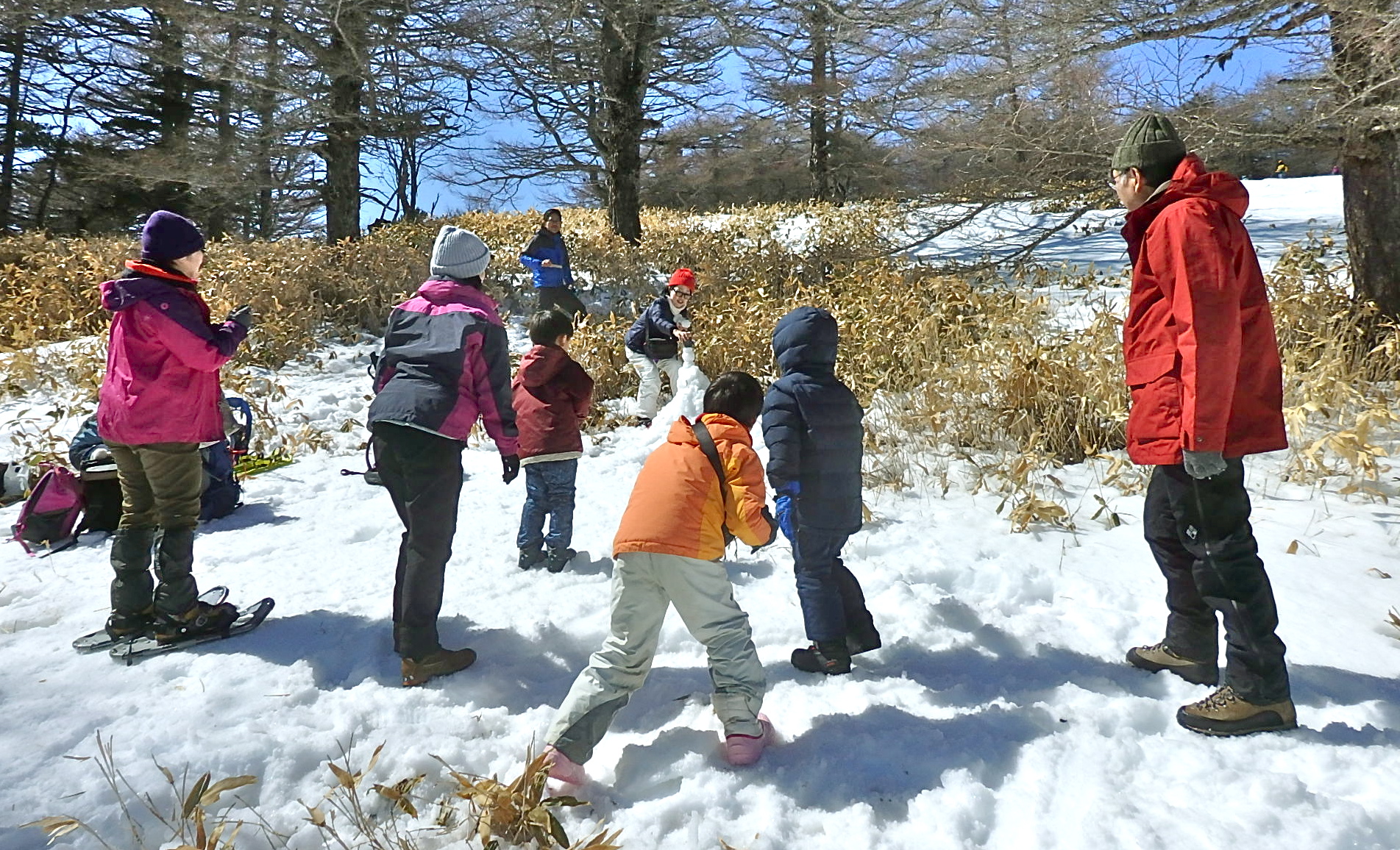 スノーシュー、雪遊びして、テントで食事もしたね